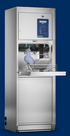 La thermo-désinfection est la méthode de désinfection la plus efficace et la plus conseillée pour les dispositifs médicaux réutilisables comme bassins, urinaux, bocaux d’aspiration et seaux.