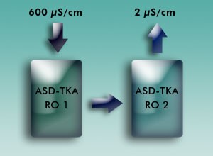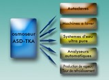 Production économique d'eau purifiée à partir d'eau brute pour alimentation de laveur de vaisselle de laboratoire, autoclave, système de production d'eau ultra pure et la distribution d'eau de rinçage déminéralisée à l'évier.